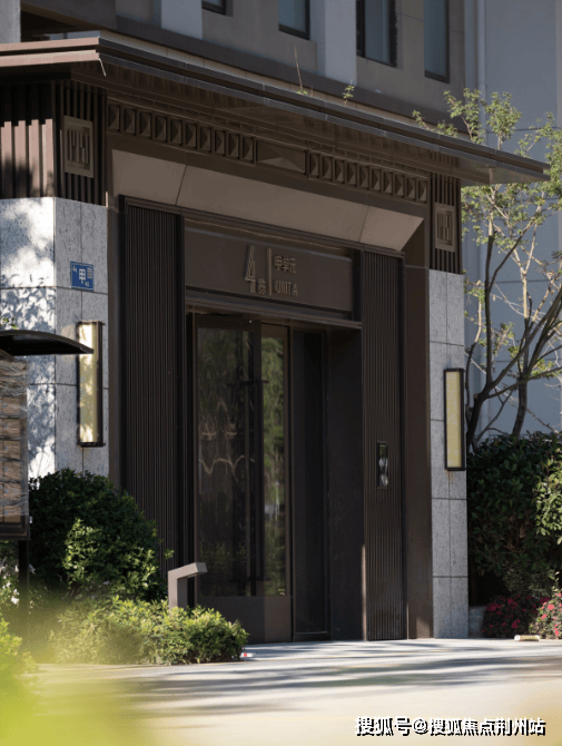 经过设计团队反复地探讨修改,入户大门将古韵与现代风完美结合,深咖色金属拉丝搭配玻璃门,既汲取了传统东方的建筑神韵,又引入西方建筑和肌理,呈现高贵的”归家大堂“。