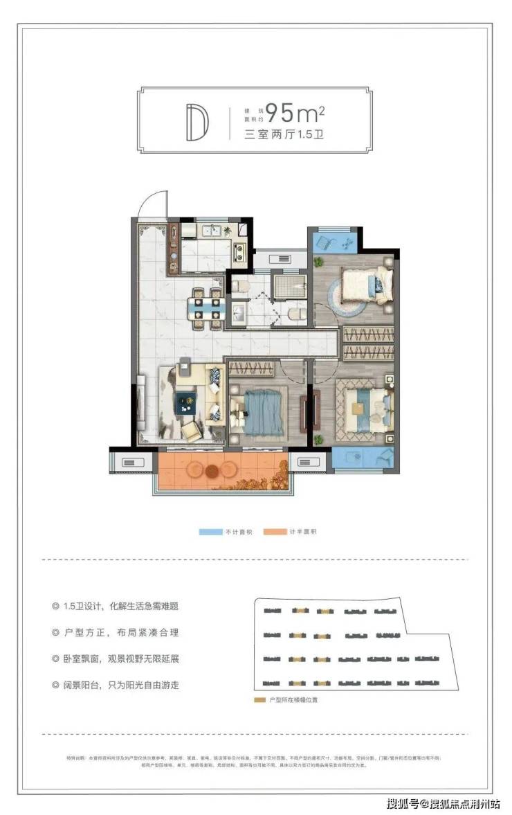 建面95m²三房两厅1.5卫