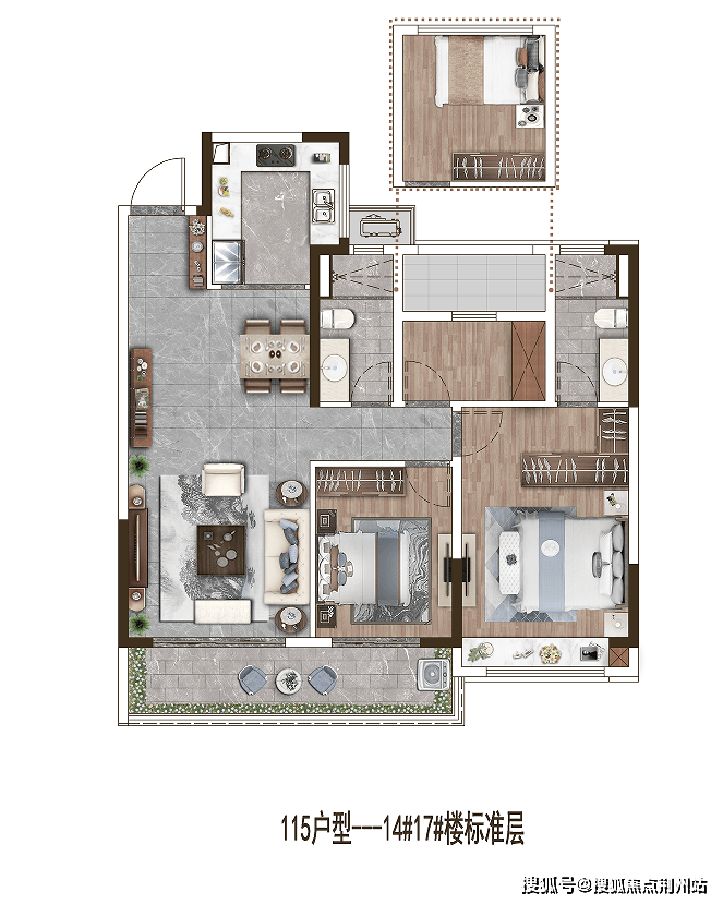 对于一套建面约115m²的首改三房户型来说,这个户型充满了浓浓的“改善气息”。