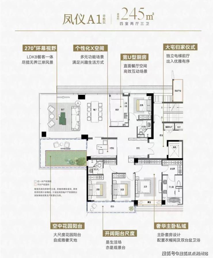 革新四代宅核心设计,户户配空中庭院约6.5米挑高露台,把花园搬入云端。