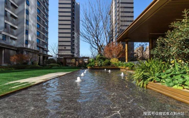 项目摒弃常规的中央景观布局,通过多层次、渗透式的景观架构与蜿蜒连续的动线设计,让绿意蜿蜒渗透到每一栋楼前。