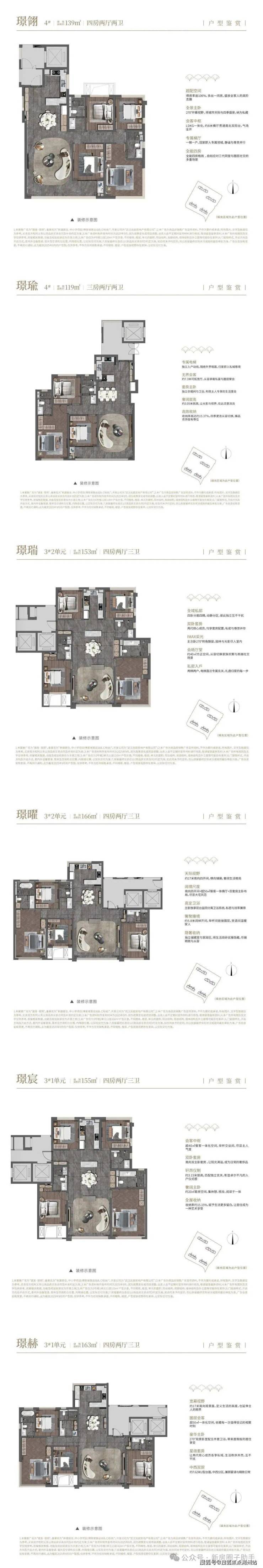 项目的户型有119、139、153、155、163、166㎡,所有户型的得房率均不低于100%。