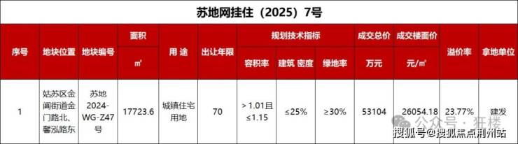 2024年7月,苏州瑞嘉商业发展有限公司以总价1.3亿,拿下金门路Z08号地块,成交楼面地价20500元/㎡。