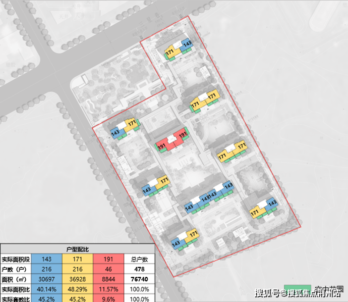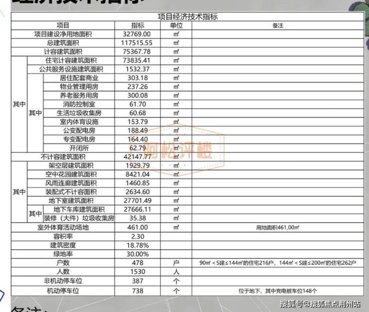 项目总建面约11.8万方,住宅计容建面约7.4万方,容积率约2.3,总户数约478户,车位配比约1:1.5。