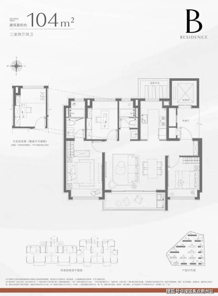 谁不想拥有大横厅,百平米内也能做到!招商中旅·揽阅的104平户型可以说是满满的诚意品质担当。