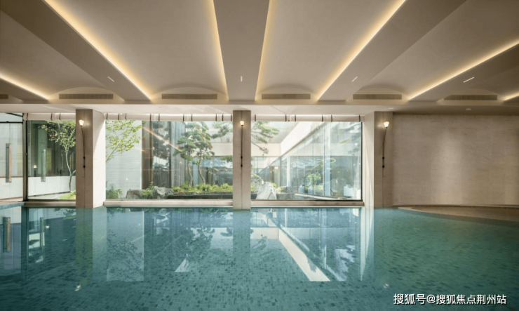 项目还打造了超1400方下沉式会所,设计灵感取自CCD打造的超五星级京基华邑酒店,并结合江潮文化进行升级迭代,集齐会客酒廊、恒温泳池、奢阔健身房等功能空间,实现会客、休闲、健身于一体的体验。