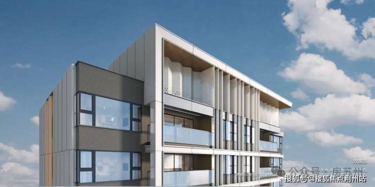 将苏州园林中“隔而不断、随影入画、妙不可言”的格栅元素引入建筑立面。呈现出纷繁变幻的艺术张力,塑造返璞归真、崇尚自然的意向。建筑层间吊顶面的木色铝板设计,呼应了姑苏古城的色调,使建筑更自然地融于古城。