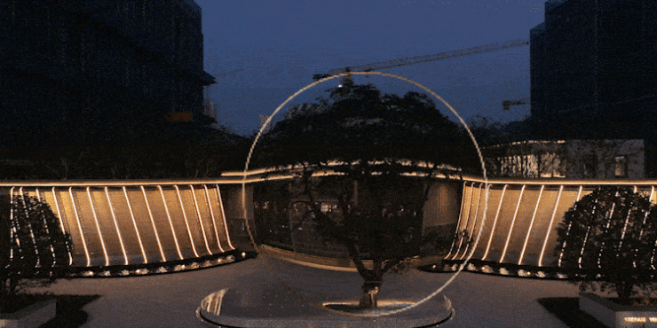 溪前大门采用异形铝板,两侧穿孔曲面透光造型