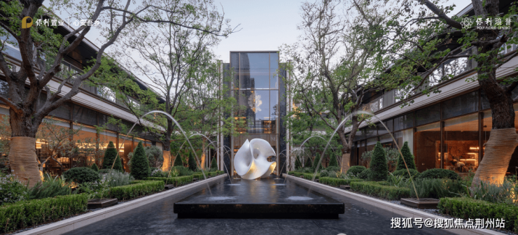 下沉庭院汲取西班牙阿尔罕布拉宫的精髓,阵列跳泉错落有致,乌桕与油橄榄相映成趣。幻影蓝水台与高艺术雕塑重现宫廷水轴的尊贵仪制,呼应庭院的珍贵,为璀璨生活埋下伏笔。三时有花,四季见绿,每一次驻足,皆是一场与自然和艺术的亲密对话。