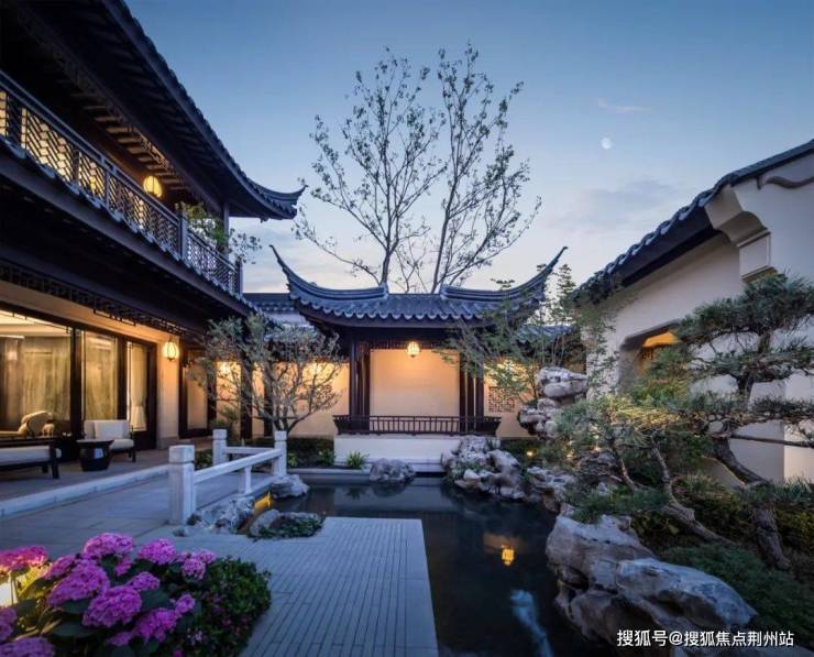 当这样的二层合院映照在园林里,当取意自古建筑上的如翼飞檐与园林中的亭台呼应在一起,你就知道,凤起潮鸣的美,是所有人都能心领神会的美。