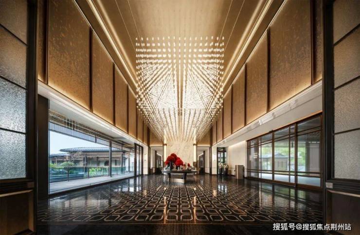 当你步入如同古典殿堂的大堂,相比起如繁星垂空的壮观艺术灯与大面的「芬迪白」奢石背景墙,更吸引你目光的,是大幅透景窗外迷人的中式园林。