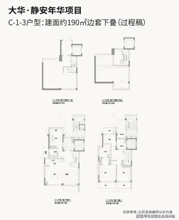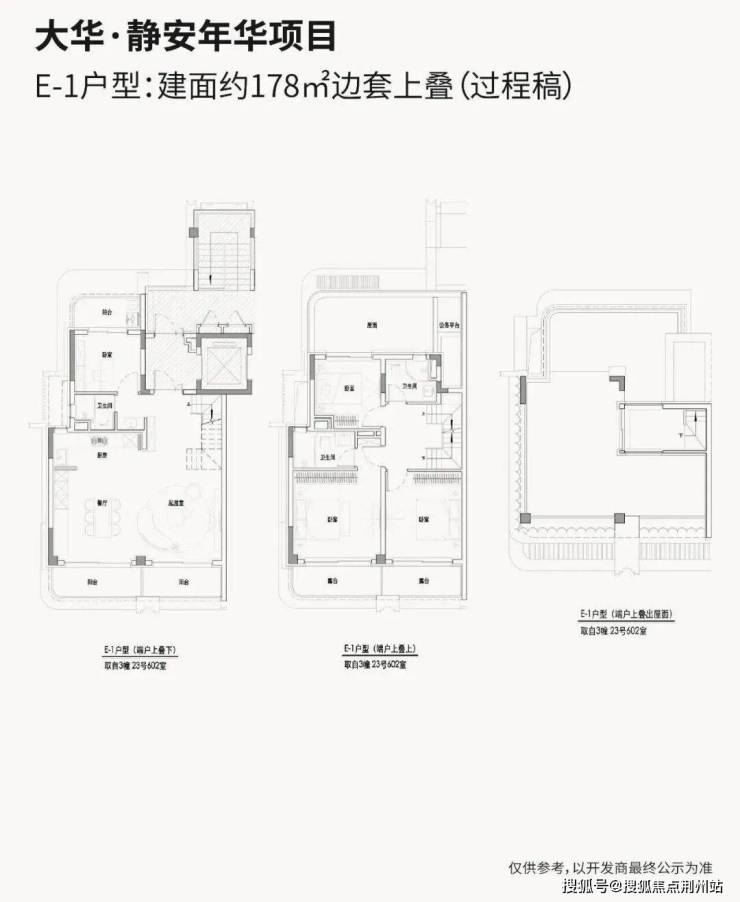 建面约178㎡上叠、约185㎡中叠