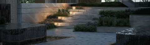 大面积的中央水景贯穿全园,亚热带植物沿水景呈阶梯式攀升