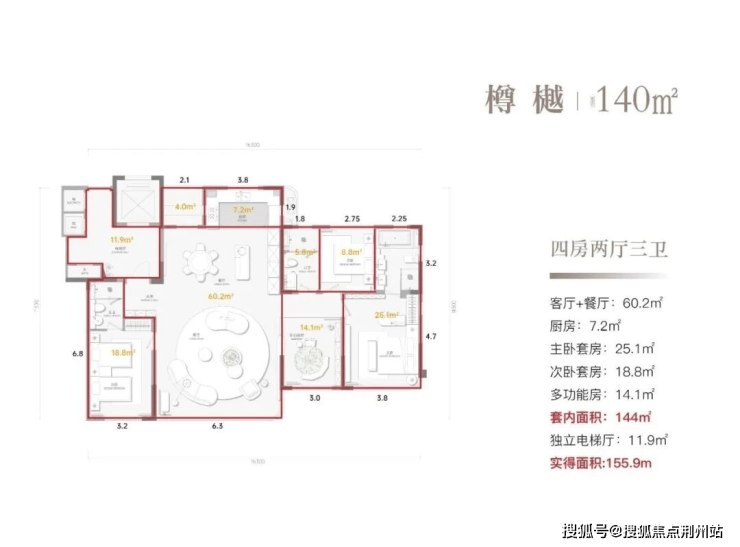 套内面积:144m²