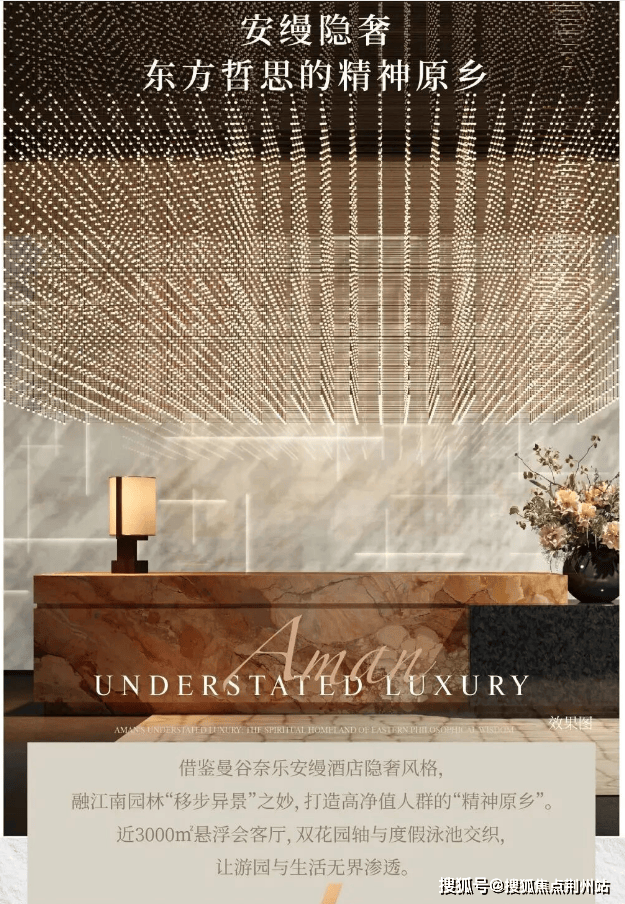 此外项目还将借鉴曼谷奈乐安缦酒店隐奢风格同时融江南园林“移步异景”打造近3000平方米悬浮会客厅双花园轴与度假泳池交织