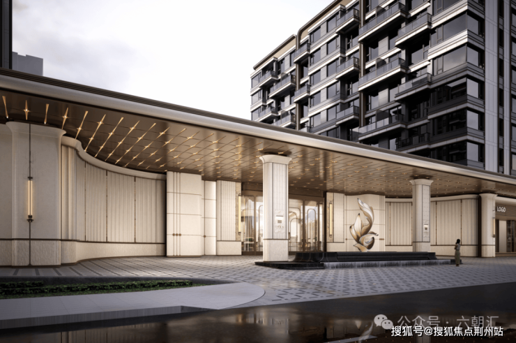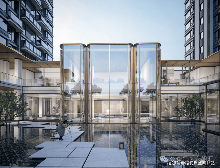 项目建筑立面以“高山流水”为灵感,大幅提升采光面,局部选用质感的香槟金铝板、米白色石材与高透玻璃,颜值极高;
