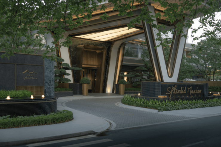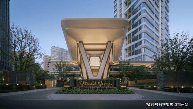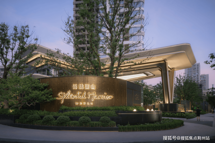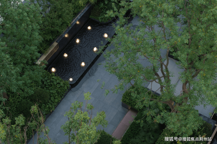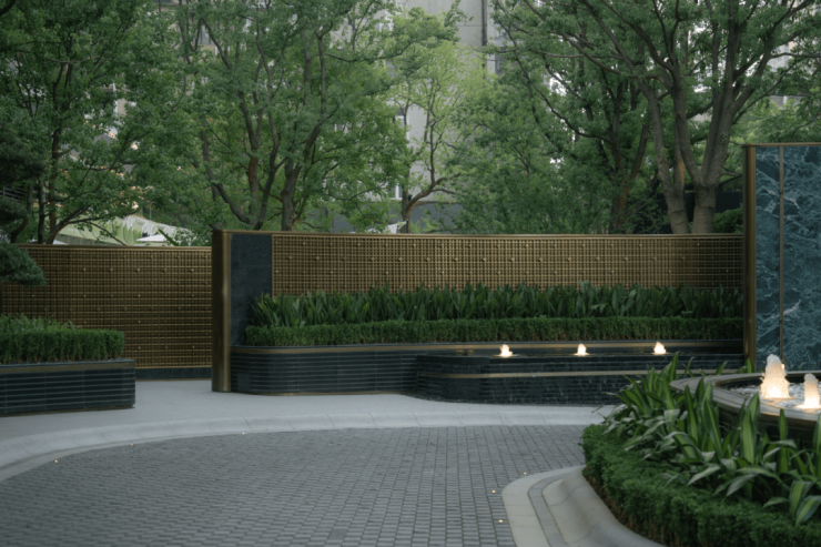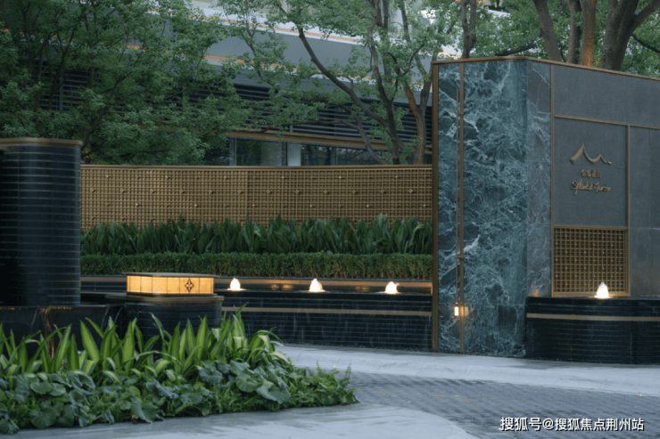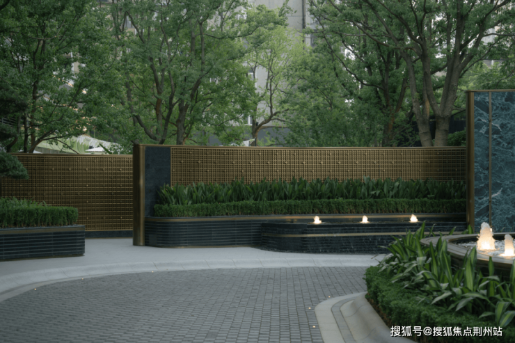 入口两侧以层级跌水、错级景墙和丛生香樟打造包裹感,满足高端客户的审美需求