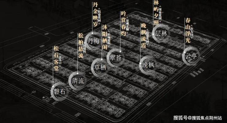 园林设计以“京杭古韵,繁华姑苏”为主题,汲取《姑苏繁华图》的意境,打造1条景观主轴、3纵中心花园、8大景观节点,形成可行、可观、可游、可居的东方诗意天地。