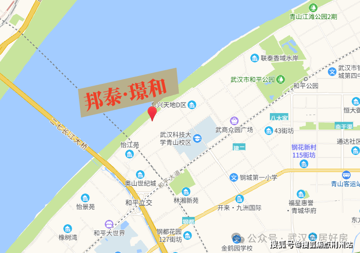 邦泰·璟和坐落于武汉青山区临江大道与三弓路交汇处,是青山滨江板块中兼具景观稀缺性与交通效率的关键地块。项目直面长江,拥有连续、开阔的一线无遮挡江景界面,这使其显著区别于传统城区内部楼盘。同时临江大道的城市主干道属性,也为项目带来了快速通达的交通优势,实现了“观江”与“出勤”的双重价值。