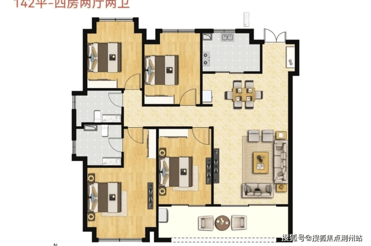 - 三开间朝南 - 餐客厅一体+南向阳台 - 主卧套间带衣帽间