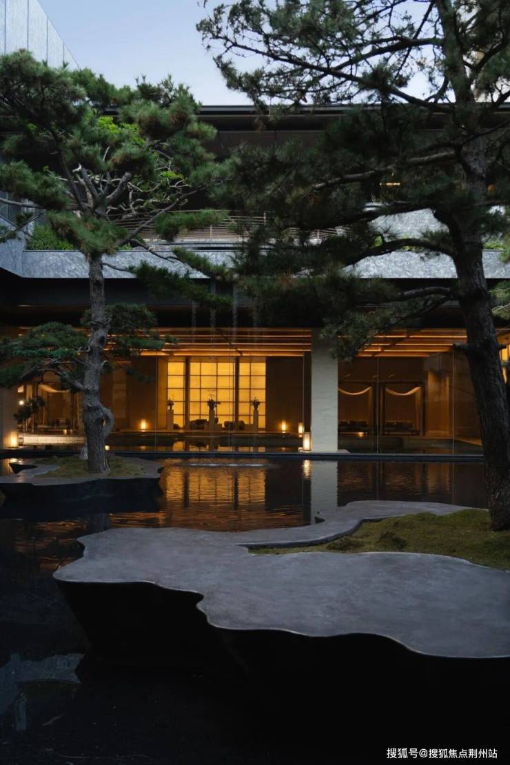 五株黑松以苍劲之姿构成「黑松叠景」,每一株都是跨越山河的生态艺术品,在古朴素简的山水画卷中,感受现代东方下的半隐秘境。