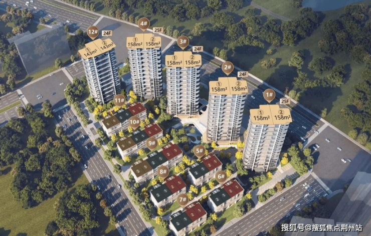 其中,1、2、3、4、12#为高层,1、4#为24F,其余均为25F,12#为143㎡户型,其余均为158㎡户型。