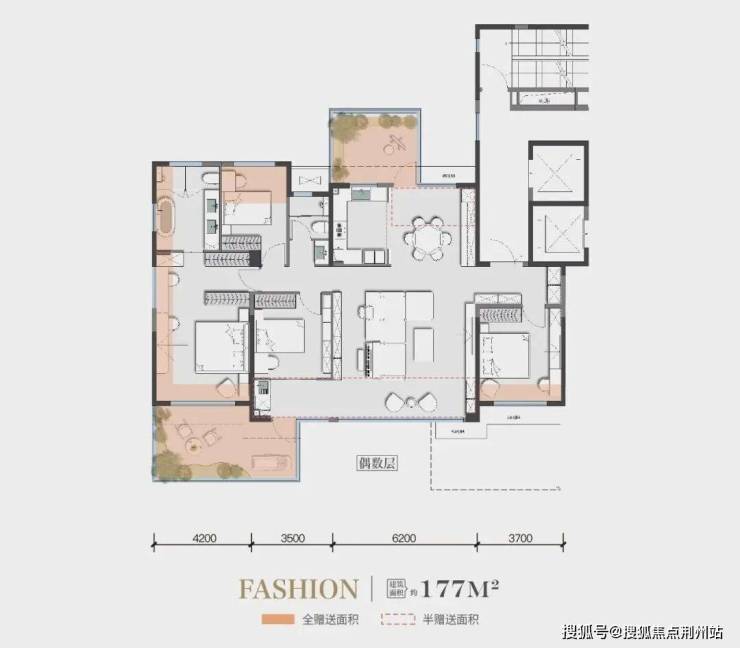 中海此次户型可以说是在普通四代的基础上再次升级,除普通四代有的奇偶错层以及6米挑高外,更是在143和177户型中做到了南北双露台。