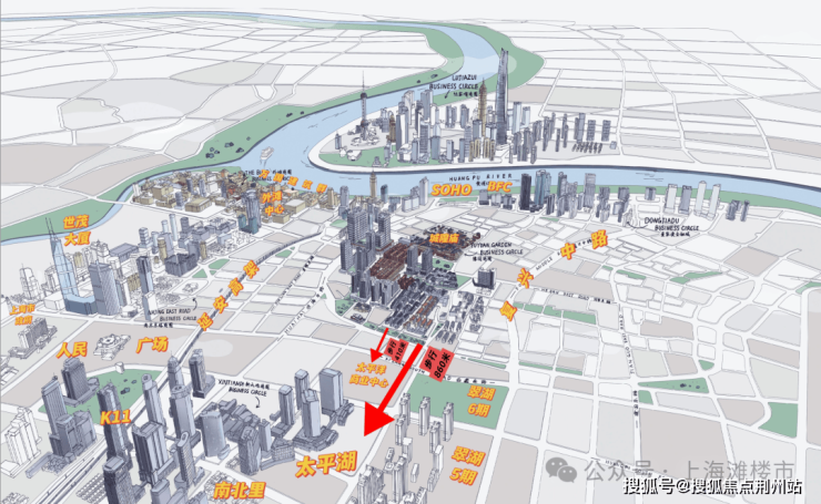 人民路、中华路围合范围,“市中心的中心” !是外滩-陆家嘴-北外滩“黄金三角”核心腹地,与外滩“一街之隔”、“零距离”!与陆家嘴“0.5公里”,“左右逢源”!链接外滩、人民广场、新天地关键位置!