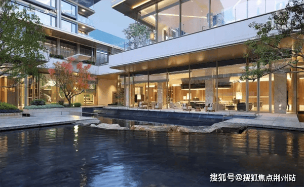 整个项目在杭州刚需楼盘里最卷的部分是做了6米高差的下沉式庭院,在不同的高度做了包厢式观景平台,周围是立体式山水景观,下面是两大片镜面水景,铺以高度错落的石桥和绿植,移步易景,充满了自然的野奢味道。
