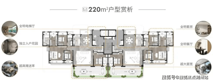核心亮点:一梯一户、超大面宽、独立入户花园、超大南向空中庭院赠送。