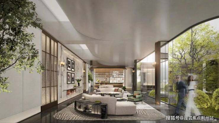 会所功能区环绕下沉式庭院布局,并通过无缝拼接玻璃,实现了室内和景观的无界连通。