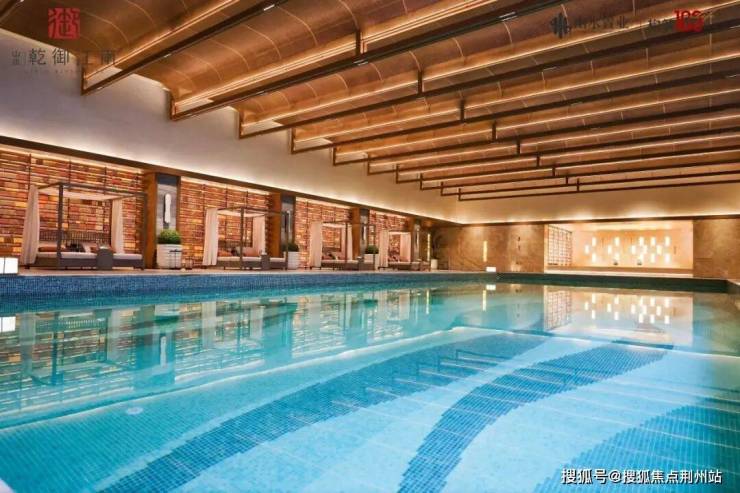 恒温泳池区域通过整面落地玻璃与下沉庭院无缝连接,游弋时抬眼便见自然景致,毗邻的SPA区与更衣区完善康体体验,让人仿佛置身度假胜地。
