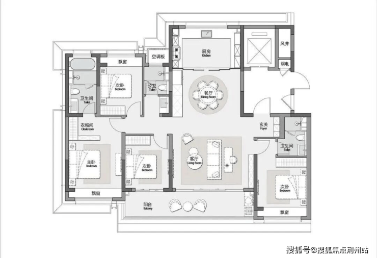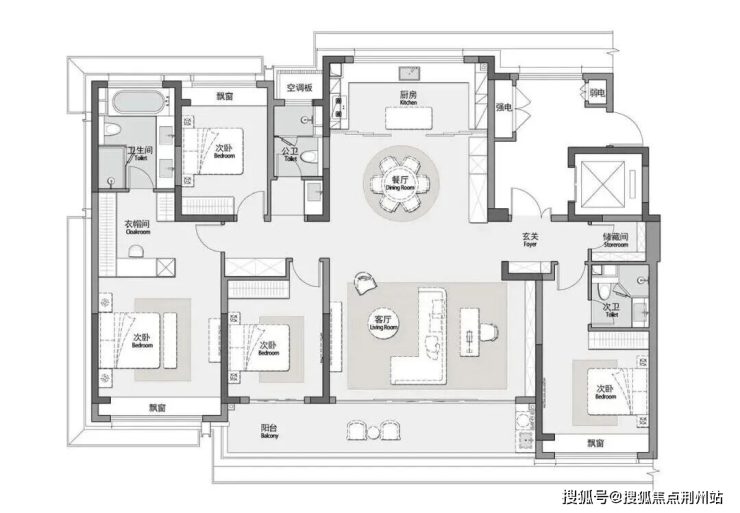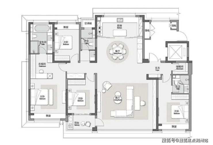 项目户型均采用四开间南向设计,大面积飘窗赠送,户型经典,但细节和风格更重要。