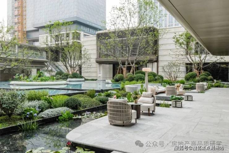 整体抬高的园林化作一座巨大的、脱离地面喧嚣的“空中花园”,如同悬浮于都市之上的“第三空间”,是专属的绿色净土。