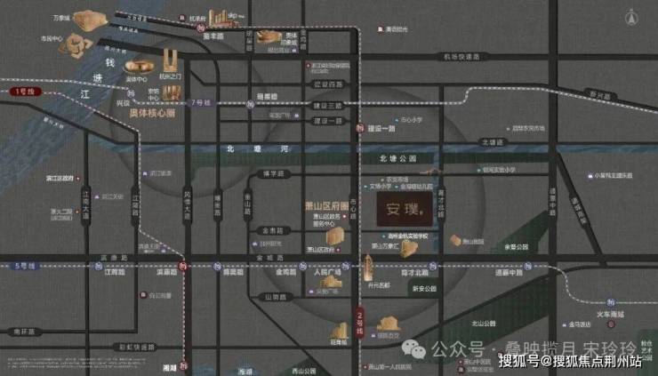 5、【生态文化】:东侧绿意河道景观,直线约400m北塘公园,约700m余暨公园、线约1.5km北山公园。直线约700m萧山图书馆、萧山剧院等。
