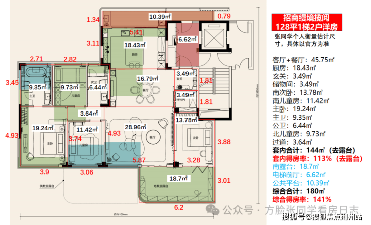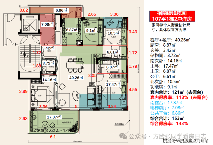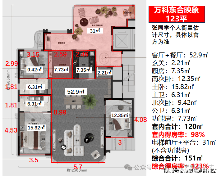 然后对比其它赠送部分:这方面招商和万科的差异点在于南北露台。