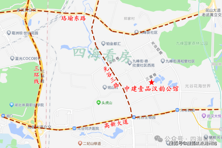 中建壹品汉韵公馆位于三星巷与孟新路交汇处,在楼市划分中属于光谷中心城板块,行政划分属于东湖高新区,环线位置在三环外。