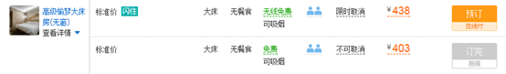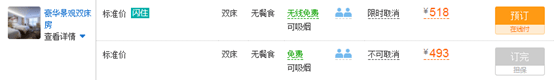 我们以周边酒店价格为例,一套无窗的大床房一晚400元左右,而一套有窗的景观房一晚500元左右。