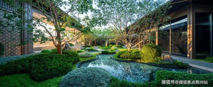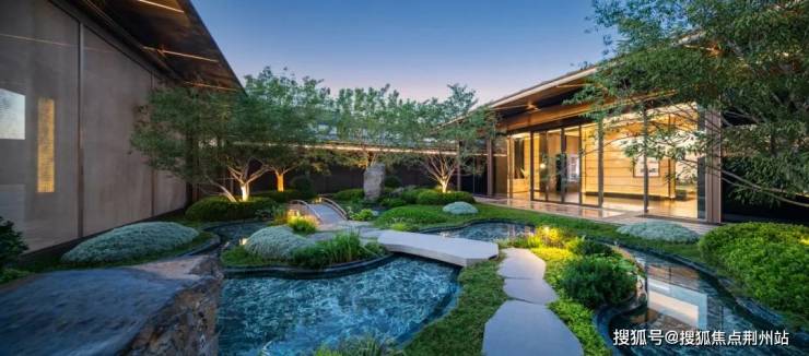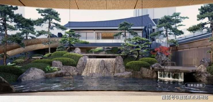 曲折蜿蜒的水系之上,小桥、石景搭配成一座“浮岛”,水景底部铺装的是源自意大利的普拉达绿奢石,就连业主容易忽视的角落,绿城也极尽投入。