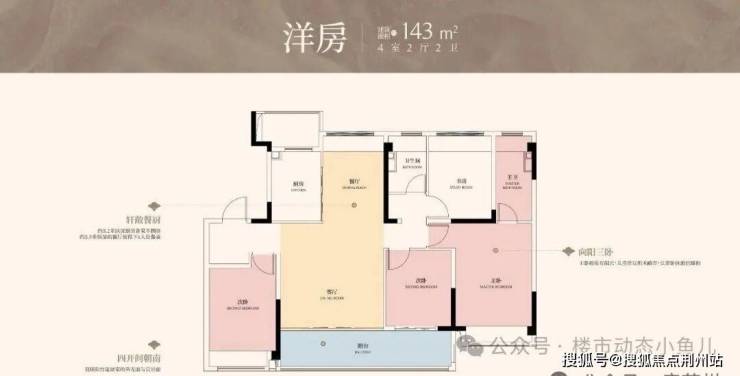 建筑面积约143㎡洋房 | 主卧奢享的品位空间此户型将洋房价值推向全新高度,当前市面上许多改善房型都是三开间朝南,餐客一体的设计,而绿城兴贤澜颂建筑面积约143㎡以其精妙的设计,实现了尺度、功能与舒适性的完美统一。四开间朝南:双联阳台延展家的采光面与赏景面。l向阳三卧:主卧梳妆有阳光,儿童房玩积木敞亮,长辈卧休憩也暖和。轩敞餐厨:约3.2米纵深厨房备菜不拥挤,约3.9米纵深的餐厅放得下6人位餐桌。