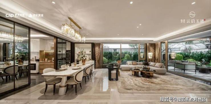 地上庭院呈现“C”型,包裹一体化餐客横厅,约10.35米开间,视觉上彰显不凡气度,无论开宴友聚,还是家人日常生活娱乐皆从容。
