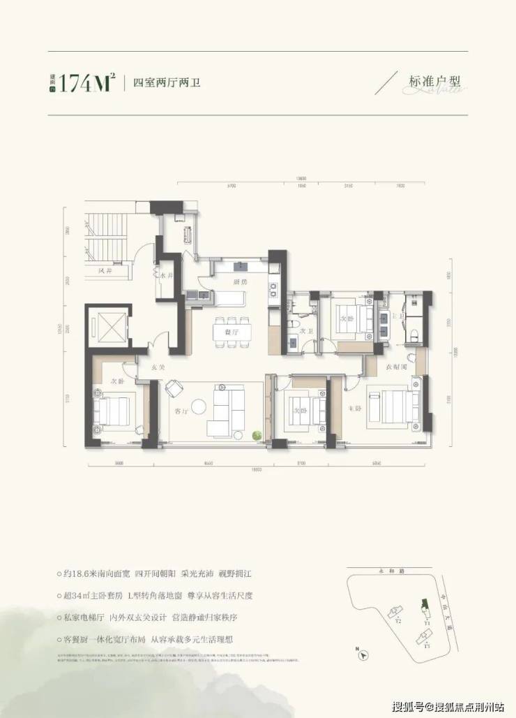 对于追求功能的精英家庭来说,建面约174平户型则是高性价比的典藏四房。