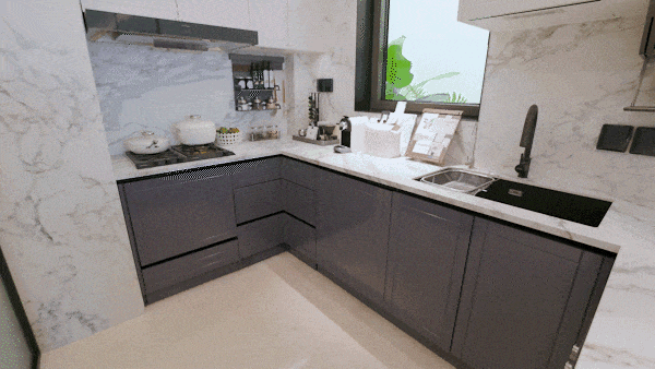 这是因为设计师专门选用了静音型号五金件,安装了缓冲阻尼,最大程度做到了“无声取用”的效果。