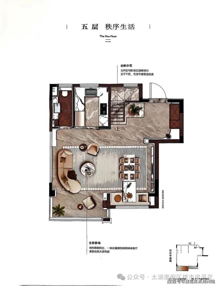 3、超高得房率:通过不计入产权面积的露台、庭院、空中花园,客厅挑空等赠送空间,实现超大面宽与全明采光,采用五面采光设计,搭配大面积落地窗提升采光与视野感;