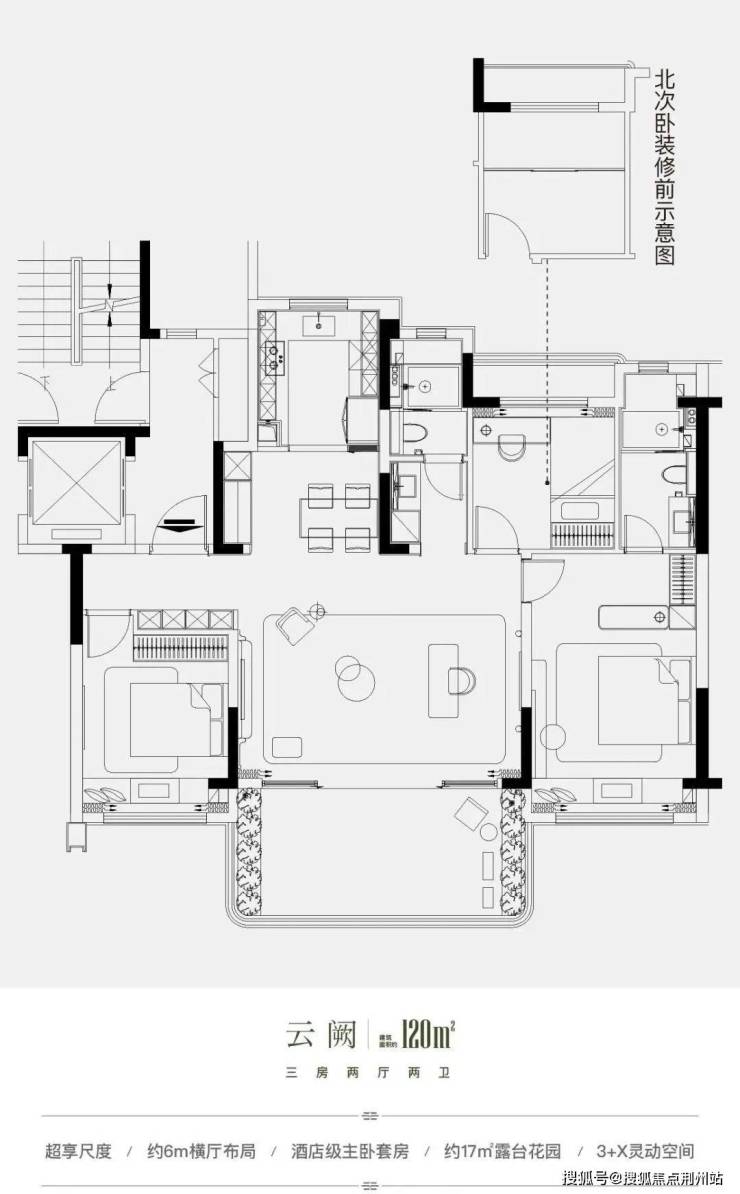 项目主力打造建面约100㎡-148㎡纯洋房,户户南北双花园、空中庭院。