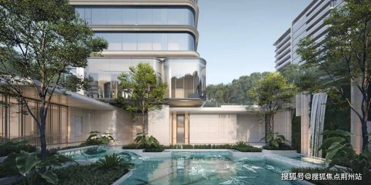 ②丰富的公区配置:下沉庭院、室内恒温泳池与嬉水池(两者通过可开合玻璃立面产生互动)、中轴水景花园会所、空中观景健身盒子。