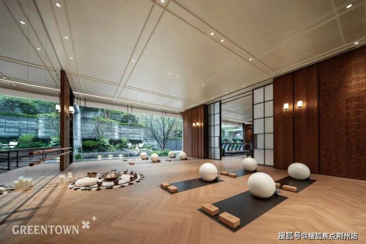 重点是作为一个整体抬高约3.7米的项目,地面层的生活馆、茶室,负一层的私宴厅、棋牌室、健身房、恒温泳池、瑜伽室,都朝向风景敞开。