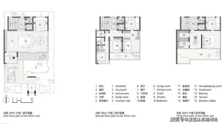 住宅产品由合院、排屋和叠墅组合而成,户型充分发挥项目的景观优势大量设置阳台、退台、屋顶露台,客厅、主卧等主要空间转角两面设置大面积玻璃窗把湖景最大化纳入室内。