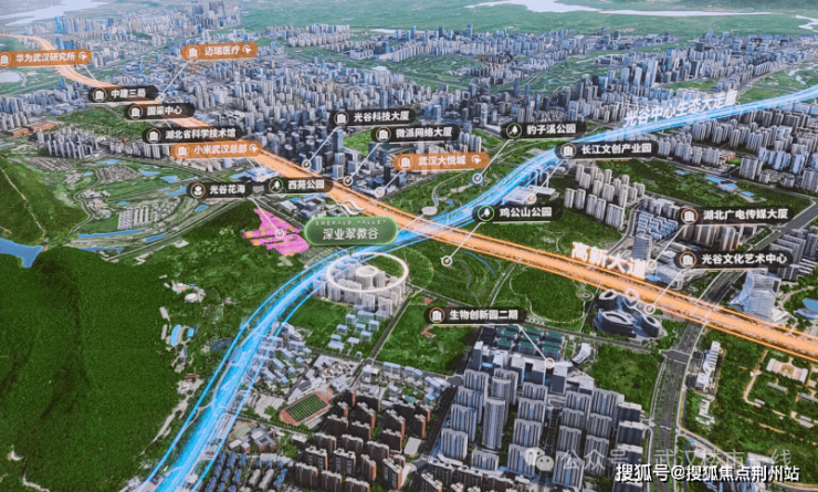 ◤一心◢ : 光谷黄金中轴,极萃光谷芯 经济轴:高新大道,世界光谷之脊梁主轴,聚集华为、小米等数百家行业龙头企业,已成为万亿级产业集群的“黄金大道”生态轴:光谷四路,毗邻光谷中央生态大走廊,是武汉市第一条城市生态走廊,更是大光谷的生态名片【深业翠微谷】毗邻高新大道与光谷四路,占据万亿级经济命脉与生态景观发展的"黄金十字轴芯",繁华与自然交汇地