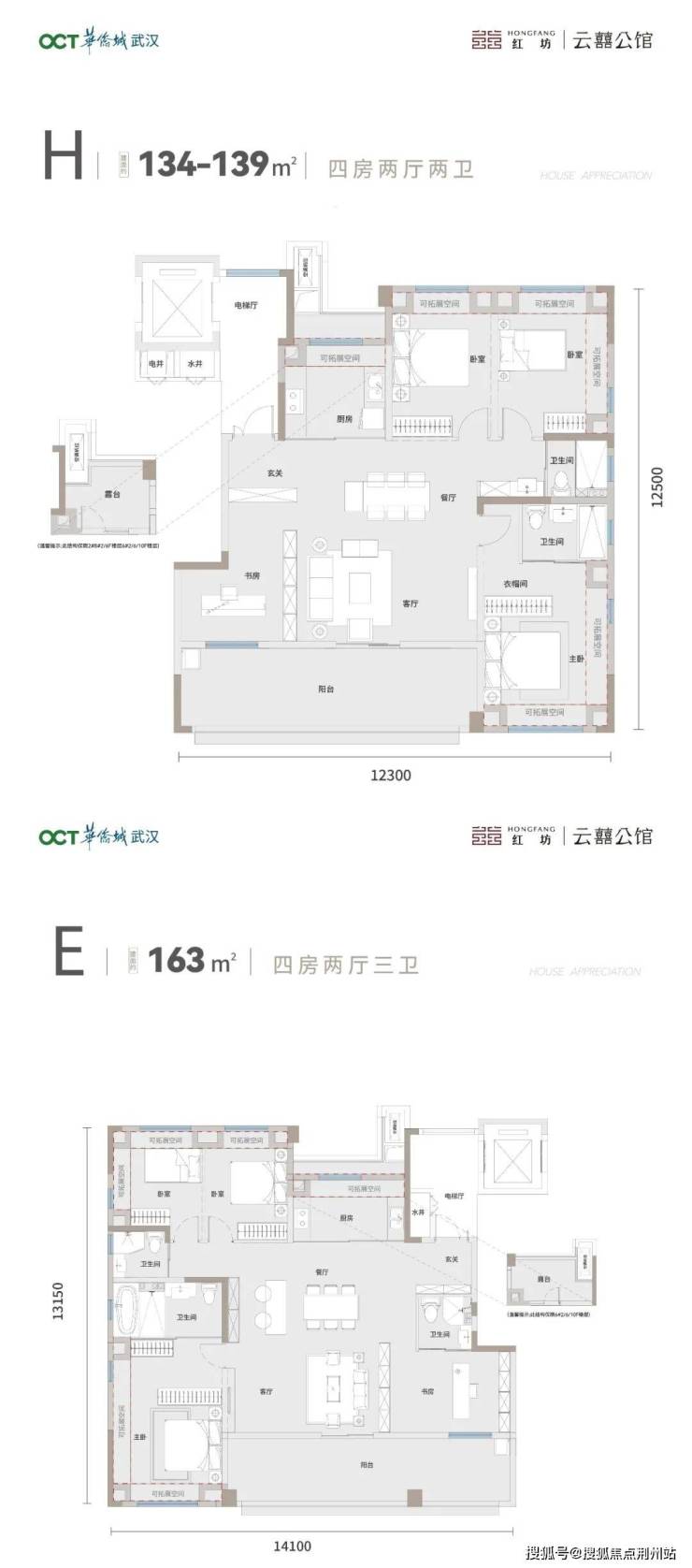 项目首开预计还有建面约134㎡、约163㎡的纯粹改善四房